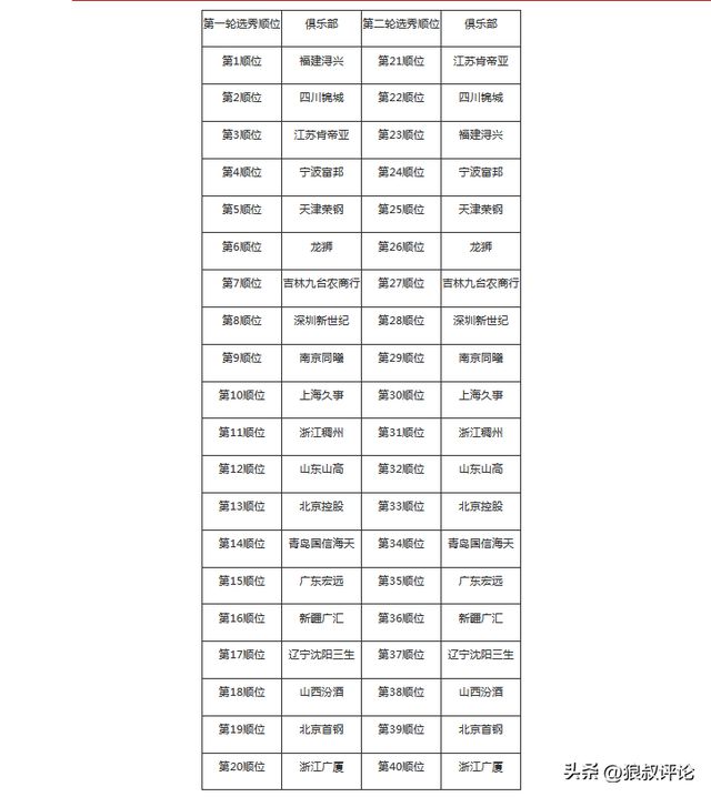 本次選秀大會(huì )的具體順位如下: